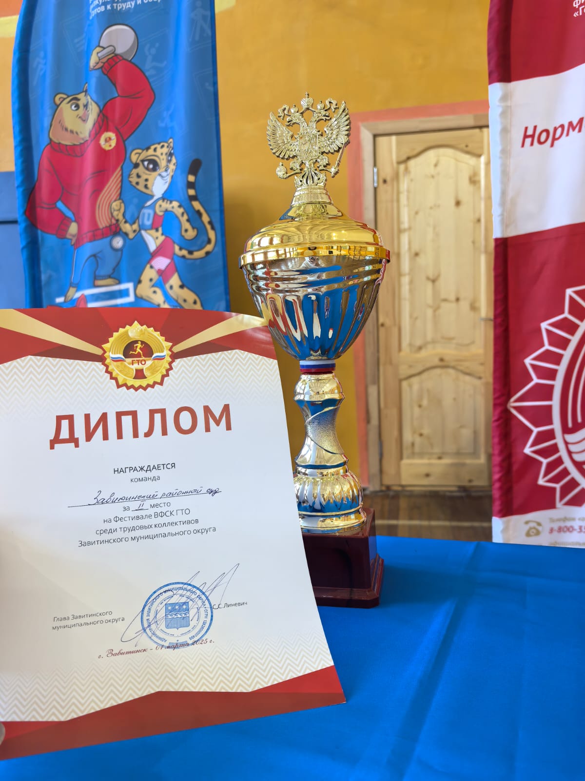 1 марта 2025 команда Завитинского районного суда приняла участие в Фестивале ФВСК ГТО среди трудовых коллективов Завитинского муниципального округа. По итогам соревнований наша команда заняла почетное второе место! И в личном первенстве наши коллеги заняли призовые места: судья Завитинского районного суда Никитина А.Е. - первое место; главный специалист суда Наумова М.С. - второе место; водитель суда Марченко В.А. - второе место! Поздравляем коллег! Так держать! ![]() |